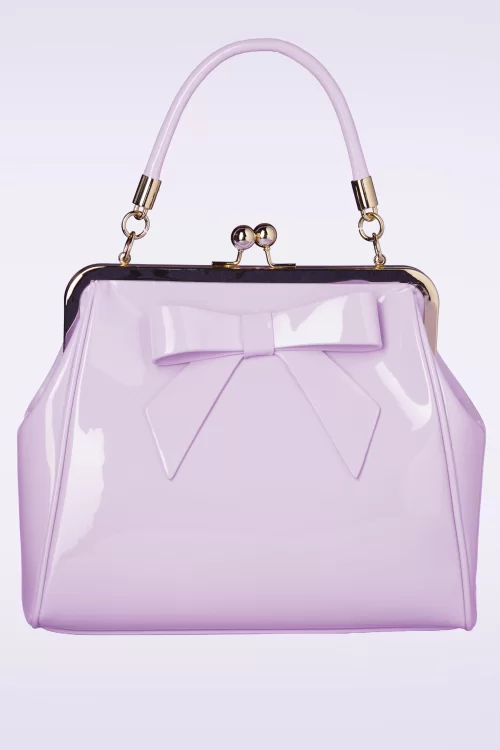 Nieuwe collectie ~ “Classic closure, endless charm.” Deze beauty heeft een opvallende goudkleurige metalen klipsluiting voor een echte vintage look. Uitgevoerd in licht lila lakleder, afgewerkt met een schattige strik. Ze wordt bovendien geleverd met een los, verstelbaar hengsel zodat je haar ook speels om je schouder kunt hangen.
