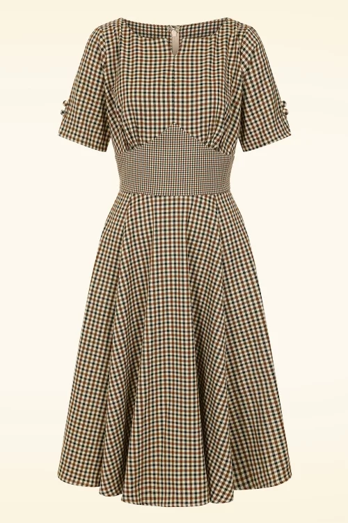 “Classic checks, endless charm!'' Deze prachtige swing jurk straalt klassieke charme uit met haar geruite print in warme beige- en bruintinten. De flatterende brede tailleband accentueert je silhouet op elegante wijze, terwijl de zwierige rok en handige zakken zorgen voor een speelse, vrouwelijke look. Uitgevoerd in een stevige maar soepele stofmix met een optimaal draagcomfort.