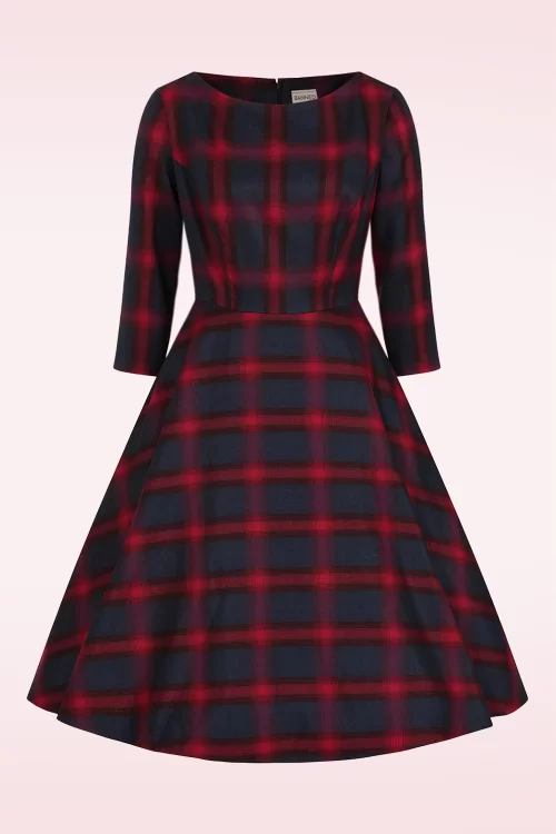 "Checks, charm, and a little mischief under the mistletoe!" Diana is perfect voor het feestelijke seizoen! Ze heeft een boothals halslijn, 3/4 mouwen en een all-over classy ruitjes patroon in rood en blauw. Ze loopt vanaf de taille uit in een zwierige swing rok met handige steekzakjes waardoor jij een super vrouwelijk silhouet krijgt. Uitgevoerd in een stevige en soepel vallende stofmix, die heerlijk draagt.