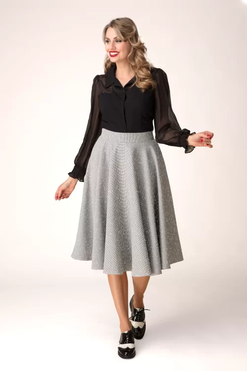 Felice Sparkly Houndstooth swing rok in zwart en wit