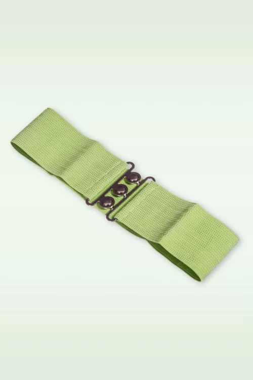 Nieuwe collectie ~ Deze Lauren Vintage stretchriem is dé ideale riem om iedere vintage outfit helemaal mee af te maken! Gemaakt van breed, licht olijfgroen elastiek met een zilverkleurige gesp die sluit in de taille. Draag haar in combinatie met onze swing jurken om je taille te accentueren voor een prachtig silhouet!
