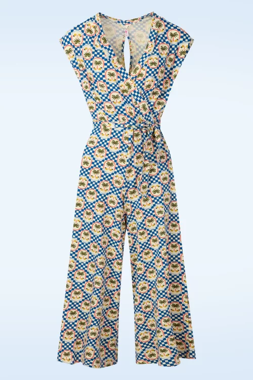 Nieuwe lente/zomercollectie ~ “Your go-to for sunny, carefree days.” Deze comfy beauty heeft een vaste overslagtop, strikbanden in de taille en wijde culottepijpen die soepel met je meebewegen. Ze is uitgevoerd in een supercomfortabele, stretchy organische katoenmix met een ruitjesprint in blauw en crème, afgewerkt met palmbomen en citroenen.