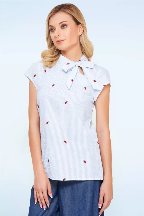 Anna katoenen gestreepte aardbeien blouse in lichtblauw en wit
