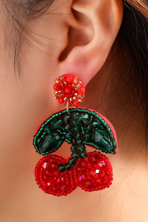 Nieuwe collectie ~ “Bite-sized charm, full-sized style.” Deze oorbellen in de vorm van kersen zijn uitgevoerd in rood vilt en bezaaid met kraaltjes in rood, groen en geelgoud. “Sweet, bold and playful.”