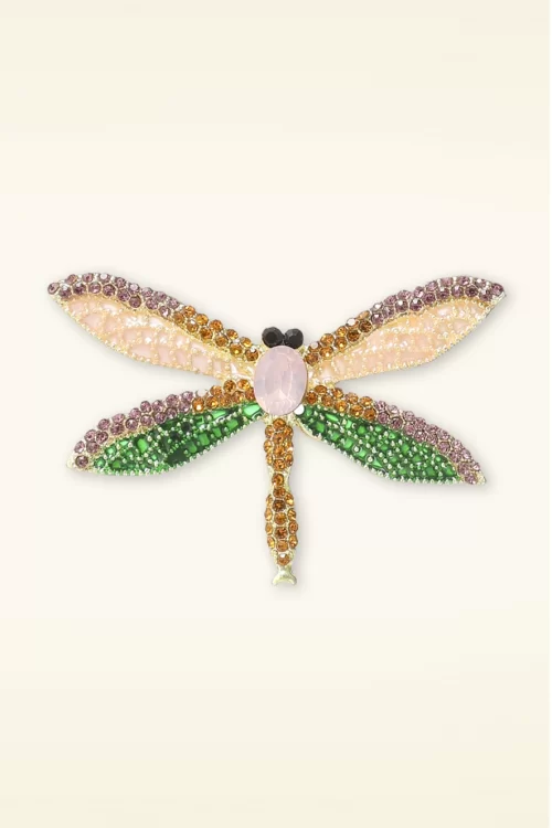 Day&Eve by Go Dutch Label Sparkly Dragonfly broche in roze en groen