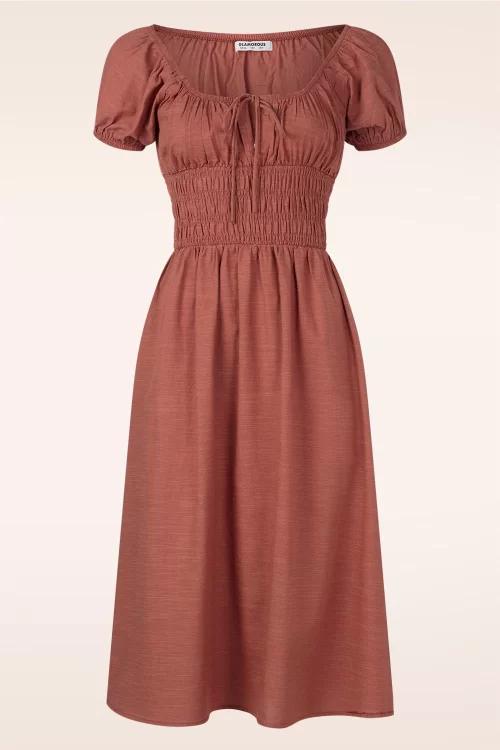 Glamorous - Ophelia gesmokte midi jurk in koper 2