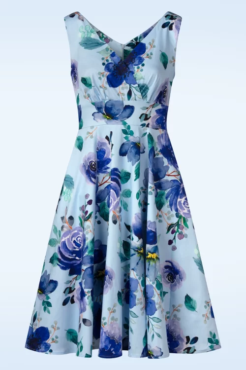 Hearts & Roses Topvintage exclusive ~ Breezy Blooms swing jurk in blauw