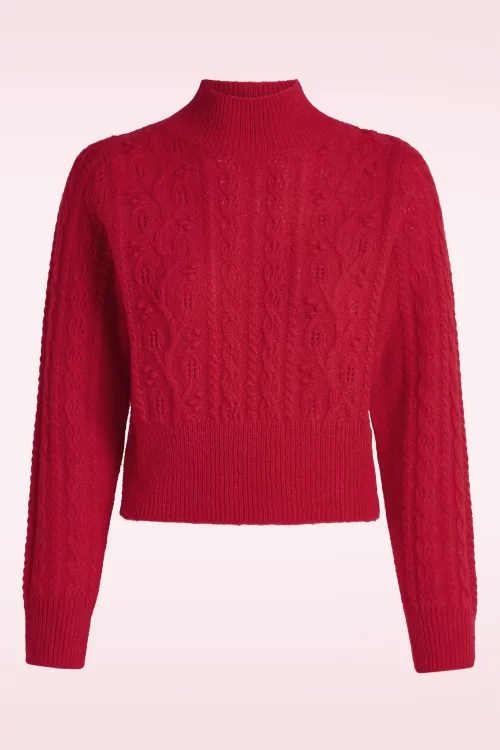 Nieuwe herfst/wintercollectie ~ “A touch of texture, a pop of color!” Voeg een vleugje warmte en stijl toe aan je look met deze prachtige trui! Ze heeft een hoge halslijn, lange mouwen en is voorzien van een opvallend opengewerkt kabelpatroon dat voor een speels effect zorgt. Uitgevoerd in een fijngebreide, stretchy stofmix in vurig rood, met een vleugje wol en mohair, waardoor ze heerlijk zacht en warm aanvoelt.