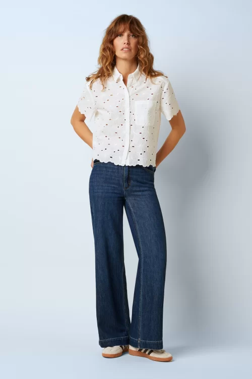 Nieuwe lente/zomercollectie ~ “Get ready to denimize!” Deze beauty heeft een mid waist en rechte, wijde pijpen voor een mooi en vrouwelijk silhouet. Ze is uitgevoerd in een stevige maar soepele, donkerblauwe katoen-/viscosemix, verrijkt met Circulose: een innovatief, gerecycled materiaal op basis van textielafval. De stof stretcht niet, maar biedt wel een prettig en natuurlijk draagcomfort.