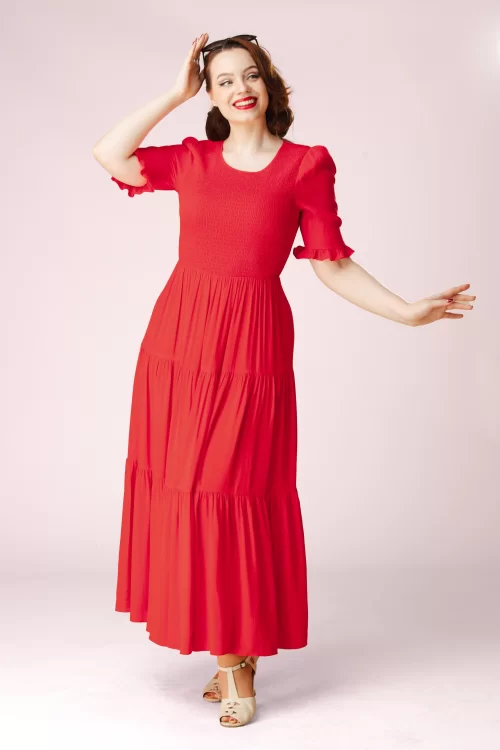 Ontdek de wereld van vintage geïnspireerde jurken bij Topvintage. In onze zorgvuldig samengestelde collectie vind je rode jurken die elke gelegenheid bijzonder maken, van een casual middag lunchen tot een elegant diner bij een chique restaurant. Ontdek hoe deze tijdloze klassieker jouw garderobe naar een hoger niveau kan tillen. Laat je inspireren door onze collectie en vind de jurk die jou op het lijf geschreven is.