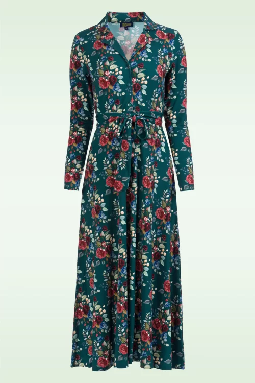 LaLamour Helena Autumn Bouquet maxi jurk in petrol en multi