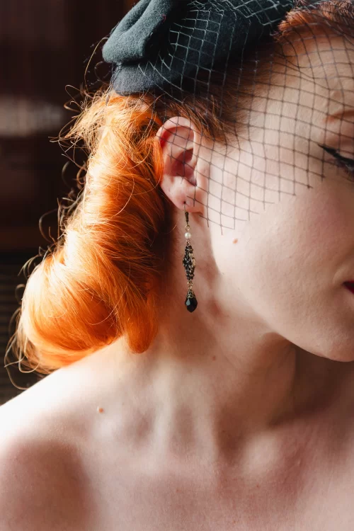 Victoriaanse filigraan oorbellen in zwart