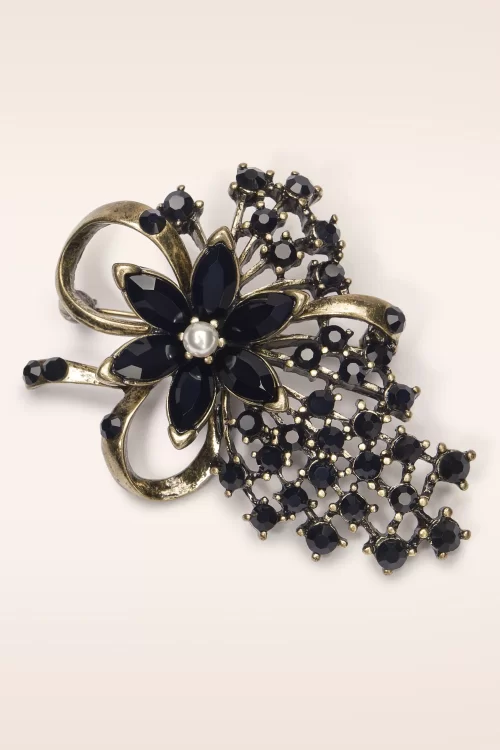Een prachtig, vintage inspired sieraad zoals deze Miriam Haskell broche kan elke outfit naar een hoger niveau tillen! Deze sierlijke broche is uitgevoerd in antiek goudkleurig metaal in de vorm van een boeket bloemen, voorzien van zwarte kristallen, strass steentjes en een kleine 'faux' parel in het midden. Gun jezelf dit prachtige boeketje! ;-)