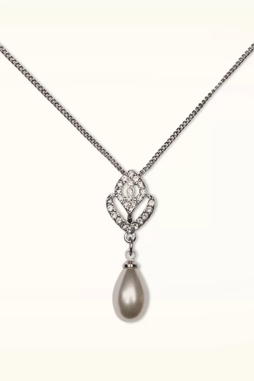 Nieuwe collectie ~ “A bloom of grace, forever worn.” Deze schitterende, fijne, korte ketting is handgemaakt en uitgevoerd in gerodineerd zilverkleurig metaal voorzien van een tulpvormige hanger bezet met fonkelende glaskristalletjes met daaronder een kunstparel.