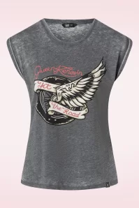Dit is er zeker eentje voor de stoere vrouwen onder ons. Vrouwen die van zich laten horen, sterk maar gracieus zijn en een beetje brutaal. Vrouw die zichzelf als koningin beschouwen (en zo hoort het ook)… Queen Kerosin! De kleding van dit stoere merk kan het beste omschreven worden als vintage streetwear met power. Queen Kerosin shirts en jeans zijn badass, maar horen oh zo goed thuis in je met vintage kleding gevulde kast. Van showstopping pieces tot heerlijke basics, Queen Kerosin heeft het allemaal. De kleding is vrouwelijk en sexy, maar met een donker randje. T-shirts die passen op iedere outfit en jeans die het beste op een ruige motor thuishoren. Ben jij de retrochick die dit als muziek in de oren klinkt? Dan is Queen Kerosin absoluut jouw nieuwe favoriete merk. Zoek uit die nieuwe look en waan je in het Amerika van de jaren 40 en 60!