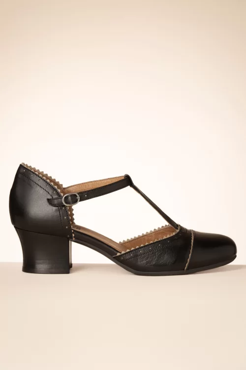 Stap stijlvol het nieuwe seizoen in met deze T-Strap Pumps! Uitgevoerd in kwalitatief hoogwaardig leder in zwart, met crèmekleurige biesjes.