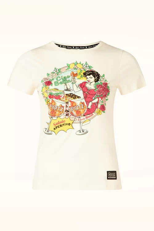 Queen Kerosin - Ciao Bella T-shirt in gebroken wit 2