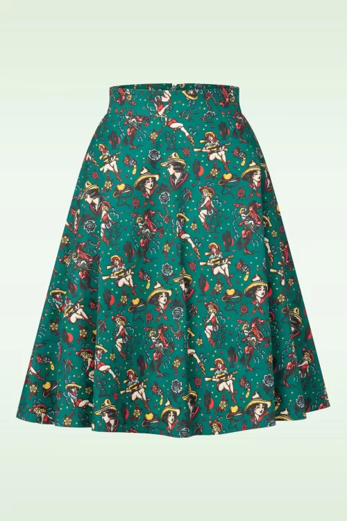 Queen Kerosin Cow Girl swing rok in donkergroen