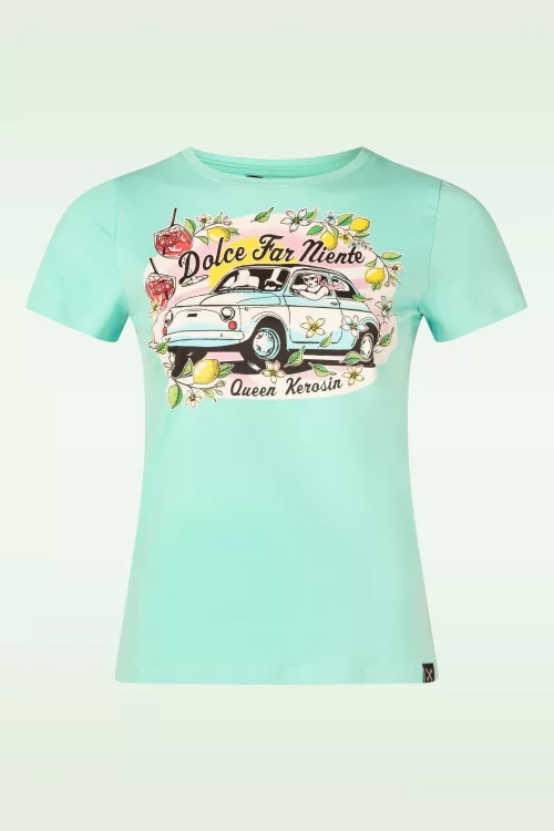 Queen Kerosin - Dolce Far Niente T-shirt in mintgroen 2