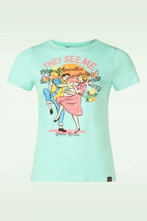 Queen Kerosin They See Me Aperollin T-shirt in mintgroen
