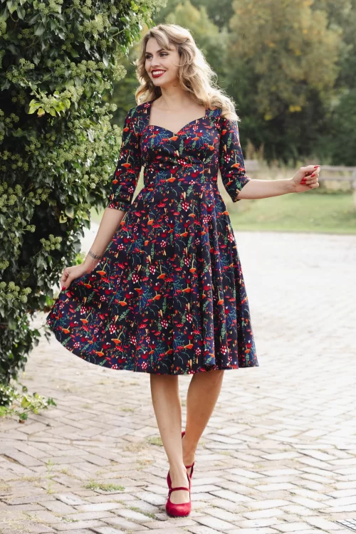 Iedere vintage vrouw heeft haar eigen stijl. Daarom vind je in het assortiment allerlei verschillende soorten swing jurken. Zo’n jurk met wijde rok is altijd een goed idee: hiermee voeg je een vleugje jeugdige charme toe aan je garderobe zonder concessies te doen aan je vrouwelijkheid. Een swing jurk is er voor elke leeftijd! Denk bijvoorbeeld aan een swing jurkje in charmante zeeman stijl met gedurfde details, of ga voor een vrouwelijke bloemenprint. Ga voor een subtiele look in een klassiek zwart swing jurkje of ga voor een flirty rood exemplaar. Bij blond haar matchen een blauwe swing jurk, groene swing jurk of roze swing jurk perfect. Wil je juist je onderscheiden van de menigte, kies dan voor een swing dress met spannende luipaardprint en maak je outfit af met rode lippen en hoge hakken. Oh la la!