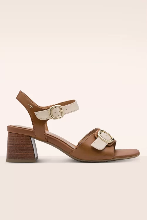 Tamaris - Desert Duo lederen sandalen in bruin en ivoorwit