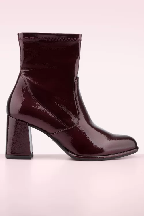 Tamaris Piper Patent Block Heel enkellaarsjes in wijnrood
