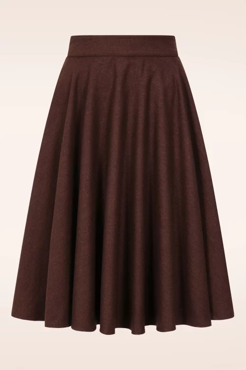 Swing your way into winter met deze Sophie rok! Dit fourties pareltje draag je hoog in de taille, vanwaar zij uitloopt in een klassieke, elegante swing rok. Uitgevoerd in een geweven, dikkere maar soepel vallende wolmix (stretcht niet!) in donkerbruin en volledig gevoerd waardoor zij heerlijk draagt. De winterperiode kan zo mooi zijn, zeker met een rok als Sophie in je kast ;-)