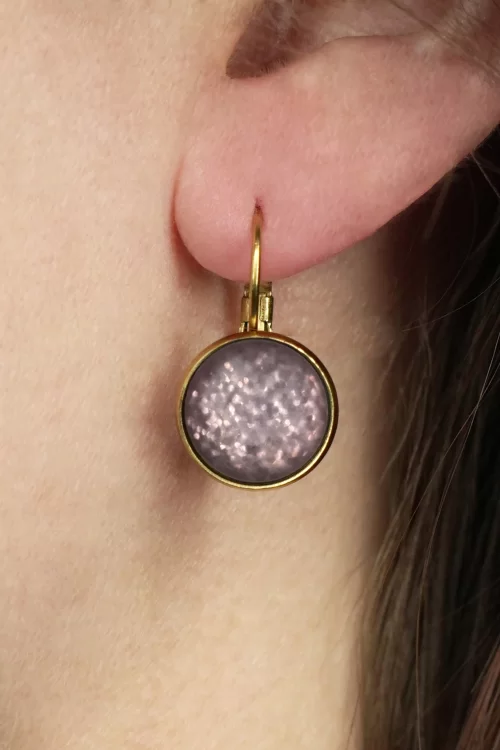 Urban Hippies Vergulde dot oorbellen in glitter mauve