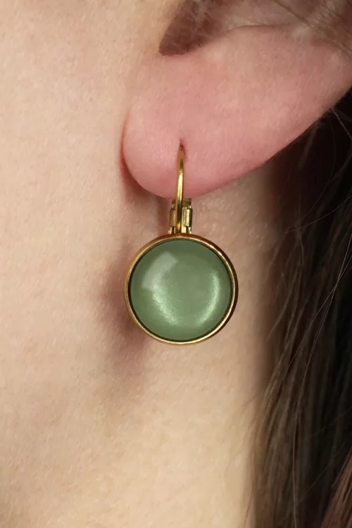 Vergulde dot oorbellen in saliegroen