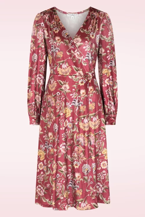 Very Cherry Dalida Floral fluwelen wikkeljurk in dieprood