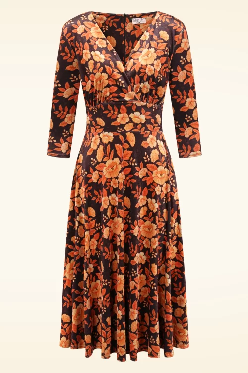 Vintage Chic for Topvintage Topvintage exclusive ~ Caroline Floral Velvet swing jurk in zwart en oranje