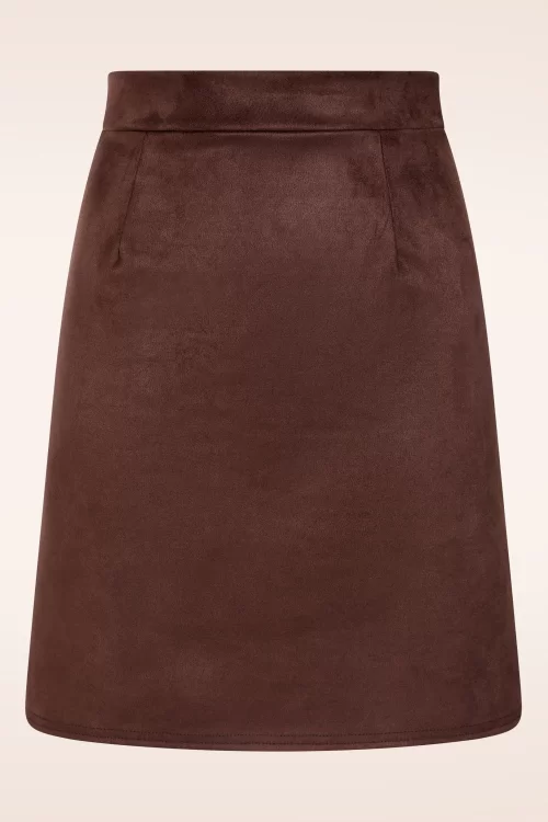 Vintage Chic for Topvintage Topvintage exclusive ~ Edith Suede Look A lijn rok in chocoladebruin
