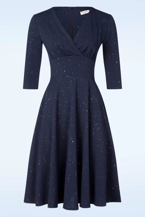 Vintage Chic for Topvintage Topvintage exclusive ~ Glinda glitter swing jurk in marineblauw