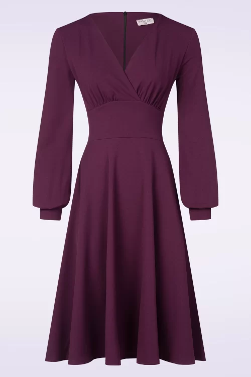 Topvintage exclusive ~ Helaine swing jurk in aubergine