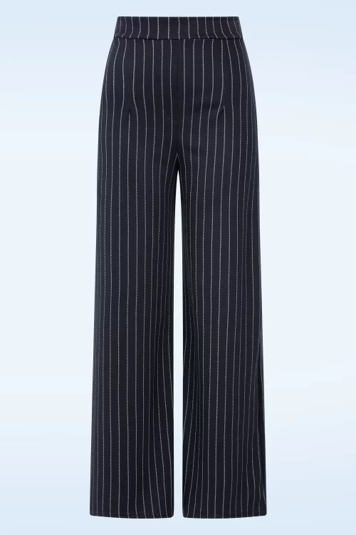 Topvintage exclusive ~ Bonnie pinstripe pantalon in marineblauw