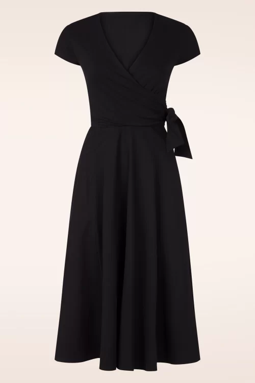 Vintage Chic for Topvintage - Topvintage exclusive ~ Layla viscose overslag jurk in zwart 2