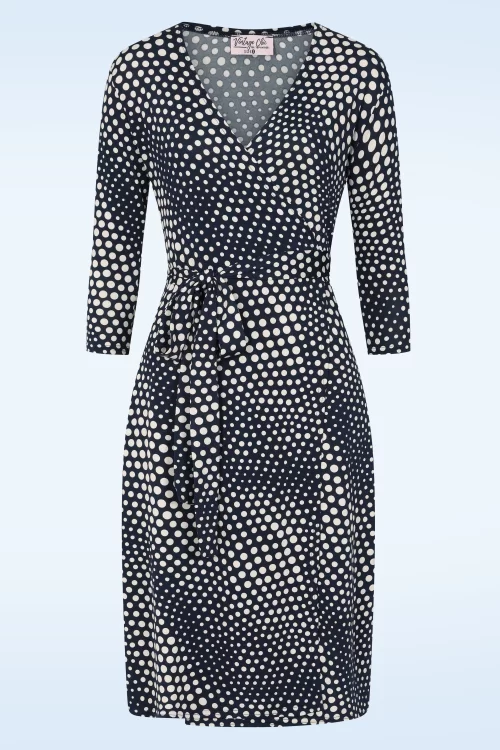 Vintage Chic for Topvintage Topvintage exclusive ~ Lola Dot wikkeljurk in marineblauw en gebroken wit