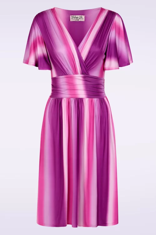 Vintage Chic for Topvintage - Topvintage exclusive ~ Sadie Faded Stripes swing jurk in paars 2