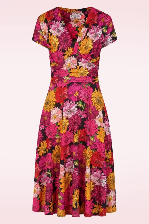 Vintage Chic for Topvintage - Topvintage exclusive ~ Sarah Flower slinky swing jurk in roze en multi 2
