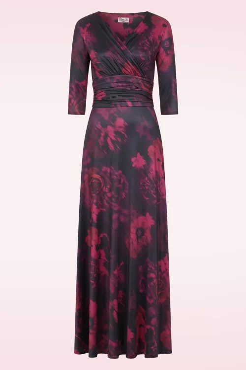 Topvintage exclusive ~ Vivian Faded Flower maxi jurk in zwart en bordeauxrood