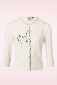 Cat ladies opgelet; deze 60s Snow Bird Blouse in Ivory White doet je hartje sneller kloppen! 'Behind every great person, there is a great cat... blouse!' Snow Bird is speels, schattig en altijd nieuwsgierig. Ze heeft er maar moeite mee om haar aandacht op een punt tegelijk te vestigen... ''Hey, wat is dat? Vlinders?!'' Deze cutie heeft een puntig kraagje met vlinderapplicaties, 3/4 pofmouwen en een reeks glanzende knopen. Uitgevoerd in een soepel, semi-doorschijnend, ivoorwit, crêpe-achtig stofje (stretcht niet!). 'Oh Snow Bird, stop being so cute!'